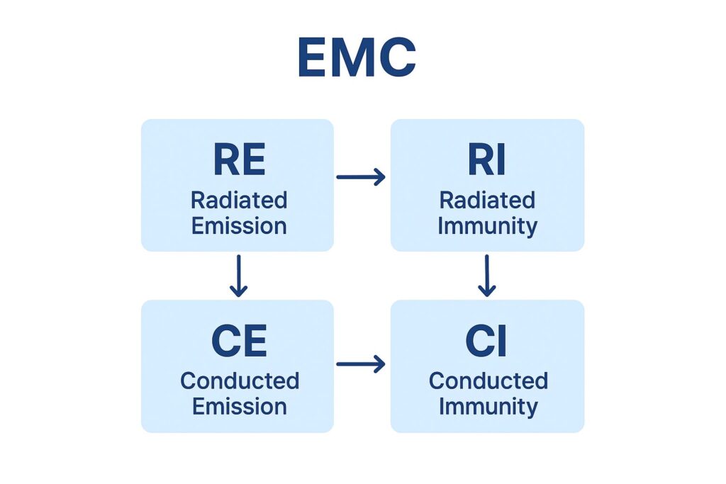 - 放射エミッション(RE):車載機器がどれだけノイズを出すか