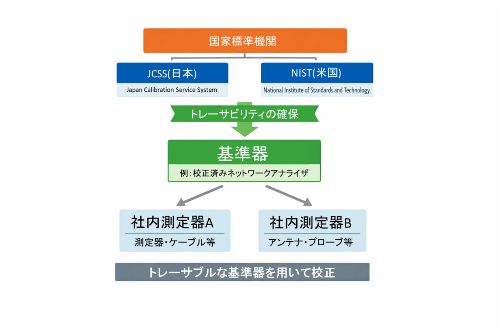 JCSS(日本)やNIST(米国)など、国家標準へ遡れる形で測定精度を保証します。