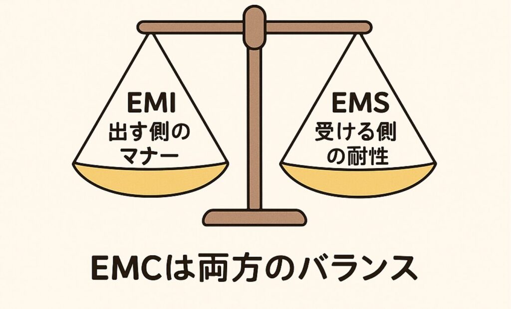 この両方をバランスよく持っている状態こそが EMC(電磁両立性) です。